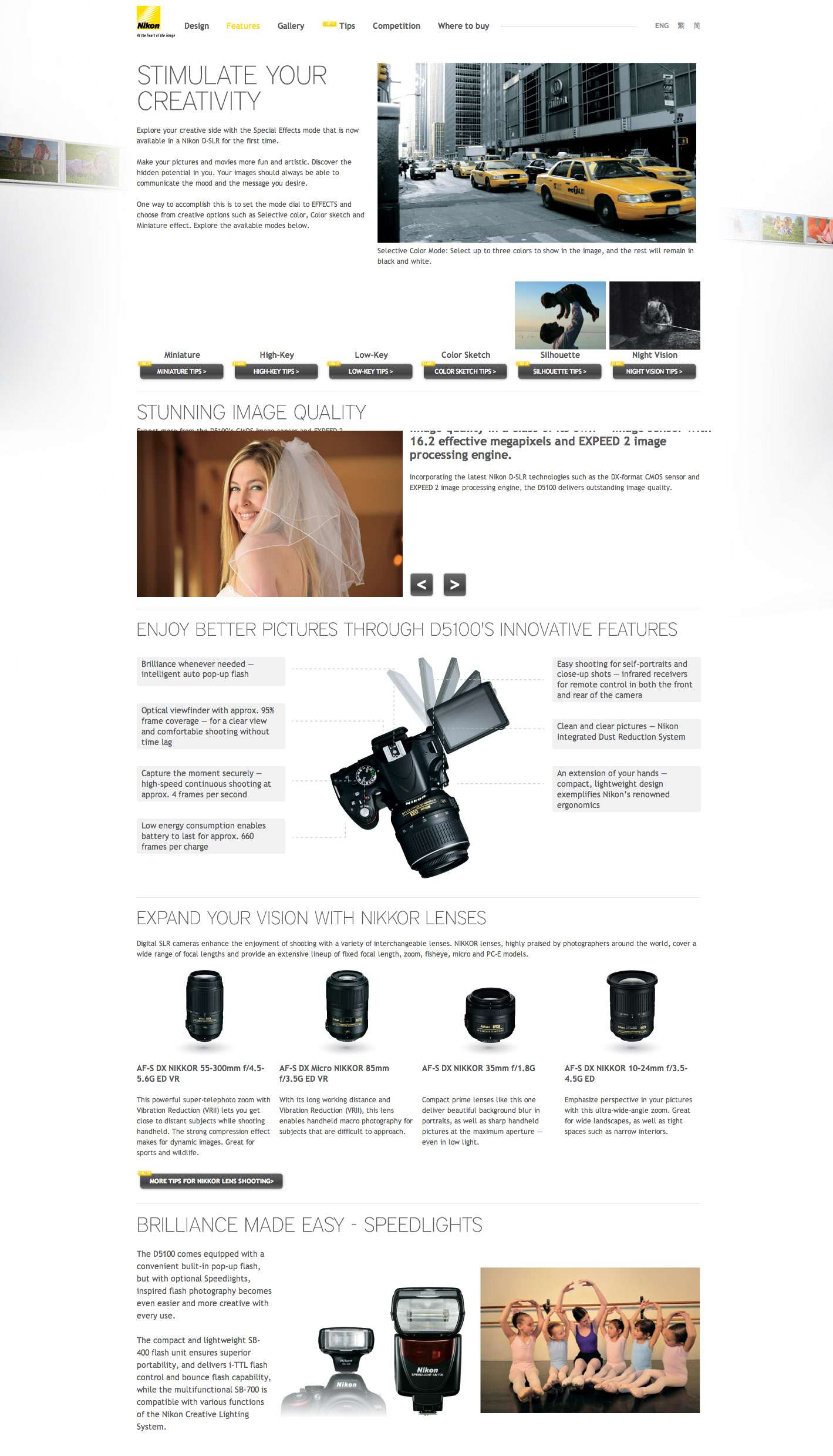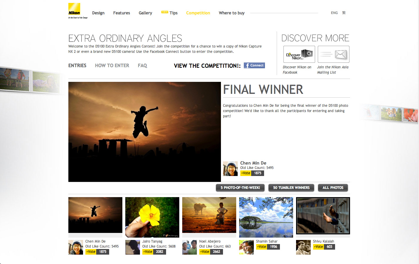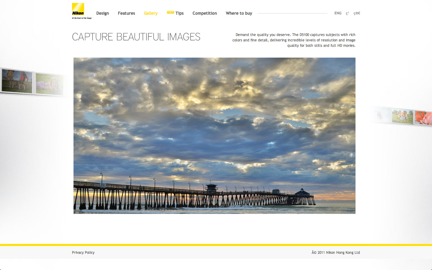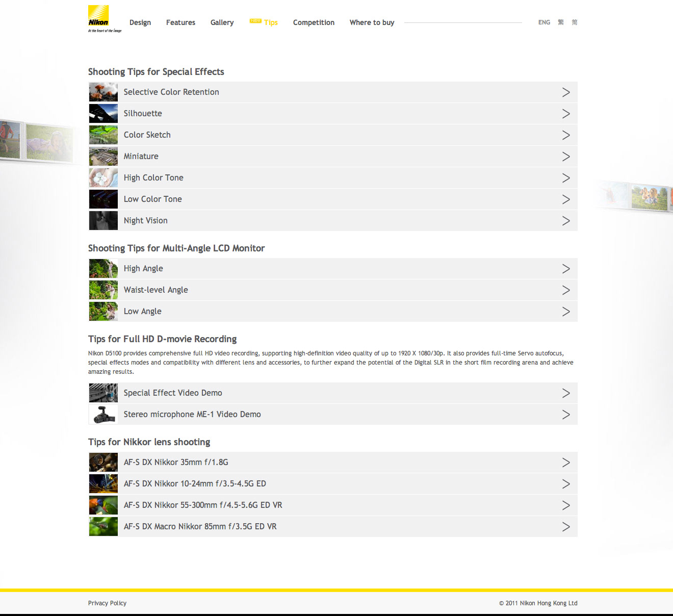 Art direction and project management for Nikon D5100's mini site. The launch of the D5100 was accompanied by a photography contest aimed at Southeast Asia.