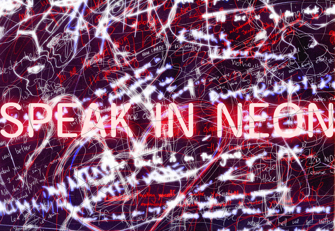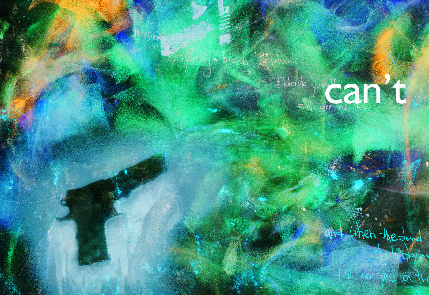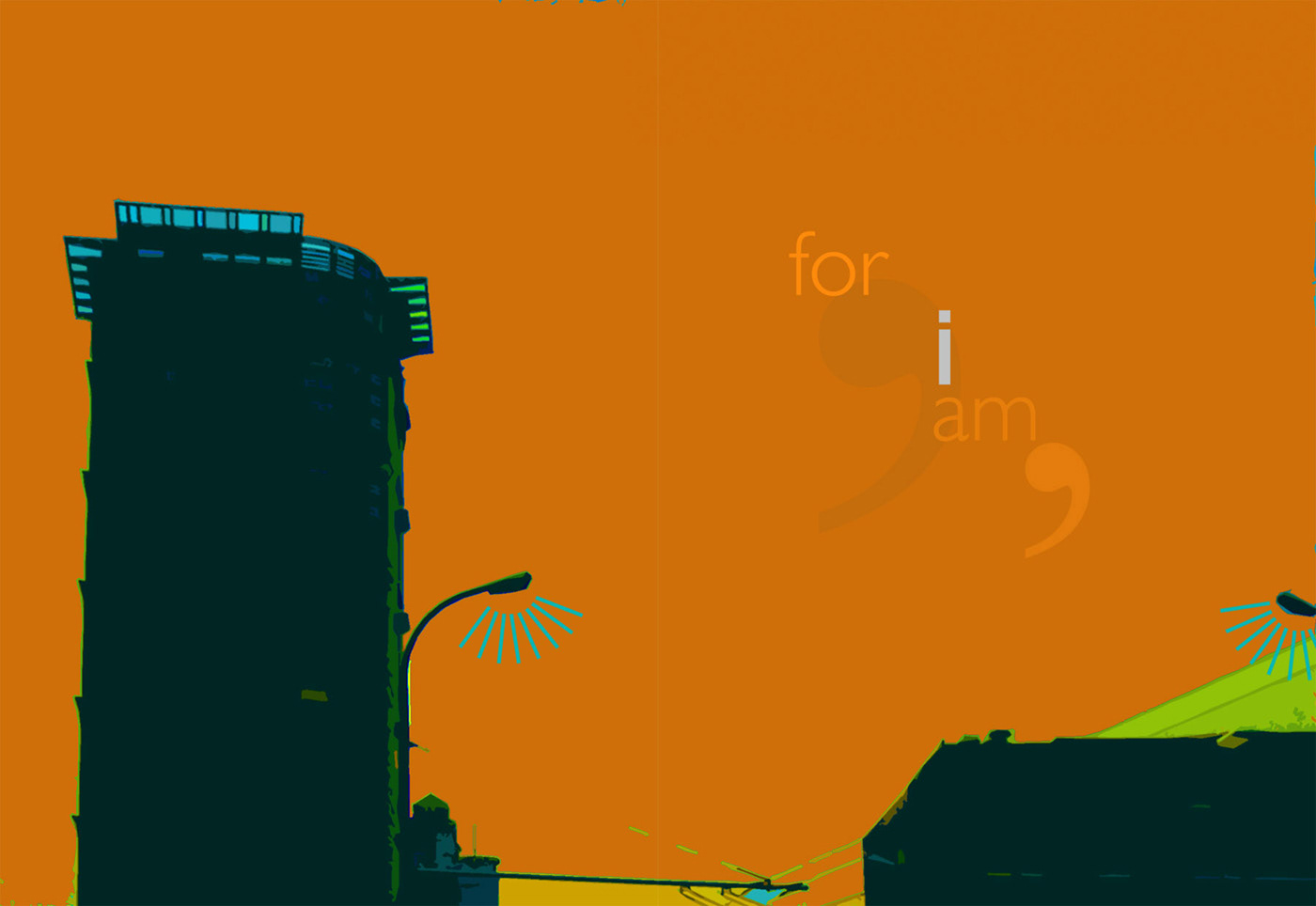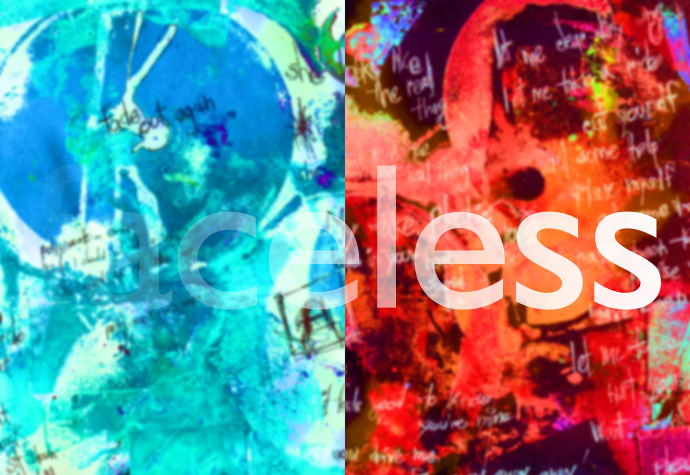 Coffee-table book, with mixed media. The project investigated the role of intuition in graphic design. Spraypaint, acrylic, watercolour, charcoal, collage + colour pencils + digital.